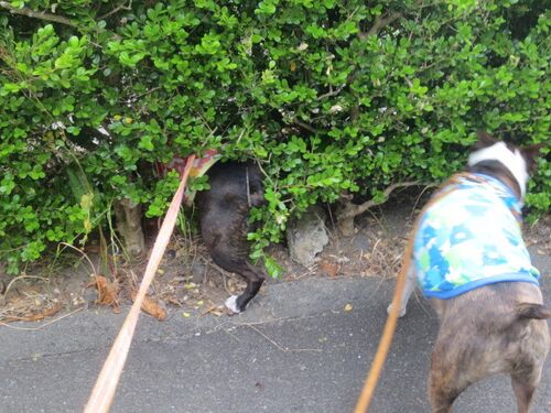きのうのさんぽは・・・ 小粒、なにに興味をもったのか、垣根に顔をつっこむどころか 体ごと入っていってしまいました。 なにがあるか見えないので、危険! ぐぐっと引っ張って元通り〜 にほんブログ村 いつも読んでいただいてありがとうございます!! ポチ…